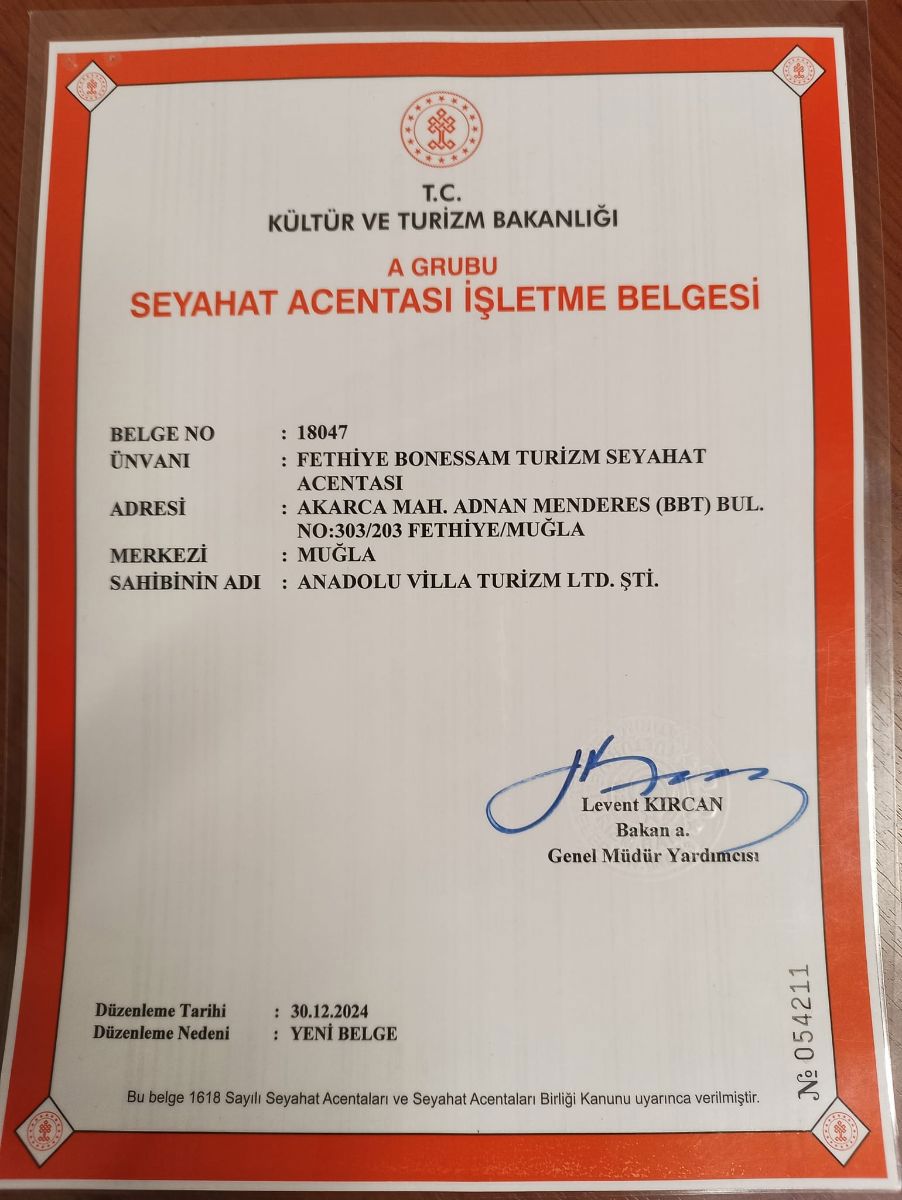 28 Nisan 2025 Pazartesi Seyahat Acentası İşletme Belgesi
